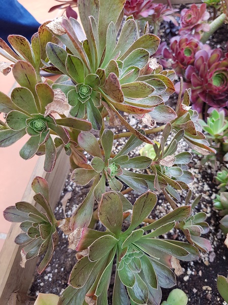 @Aloespain con lo feliz que yo vivía con mis Aeonium mal identificados No había caído en las glándulas (no he visto un spathulatum en vivo), son hipnóticas. Creo que encaja con x holochpathulatum. Si las glándulas vienen del spathulatum, a mi la forma de crecimiento y la roseta me recuerda a los arbóreos. Esta es la planta completa El Aeonium canariense me falto añadir var canariense. Los datos que te puedo aportar es que es muy prolífico, la planta madre era muy arbustiva pero no cogía altura y se cierra en verano de tal manera que al verlo de lejos pense que era un greenovia. El xbollei creo que no tiene olor la hoja, estoy fuera un par de semanas, no puedo comprobarlo. Viene de un viverista francés de bien Aeonium gomerense