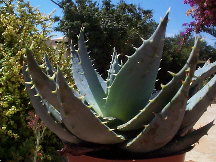 gracias guapa, me encanta ir de macetas y hoy una vez mas ire de cambios de tierra en las macetas mas viejas y las que estoy rescatando de las roturas de la ultima ventolera, también hago la muda de sustrato a algunas de las macetas que tengo en interior o sea que estoy bien entretenida aloe miliothi sigue con su rojizo de invierno, ha crecido bastante ayer encontré muerto, podrido desde el centro a esta preciosidad de aloe aloe pegleare no esta mojado, pero supongo que algún gusano lo ha agujereado desde la base, bueno uno mas que me esperara en el cielo jeje