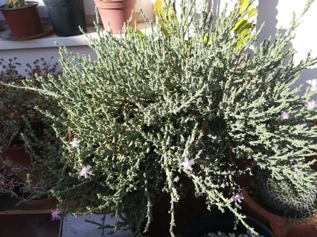 hola Grindel, lo que pasa es que no tengo casi sombra el la terraza y sobre todo a los aeoniums y echeverias este sol de justicia no es lo que necesitan pero como dices ya vendrá el fresquito, me gustan las plantas y las cuido como puede kalanchoe fedtschenkoi a este le ha sentado bien el sol y cambio de sustrato cotiledón orbiculata, este trozo nacio en una maceta de cactus, solo la plantita mas grande y al cambiar de macetas a los cactus grandes que estaban cerca de la planta vieja, volvi a ver varios ocupas chicos a si que los guarde para aprovechar para cambiar el sustrato y ponerle compañeros a la que estaba sola un dia de esos le mudare de maceta al cotiledón grande que lleva mas de 15 años conmigo saludos