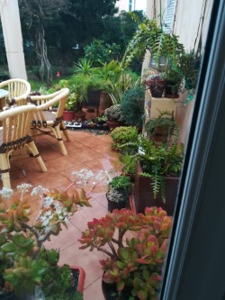 gracias guapa, veras cuando me jubile tenia una cincuentena de macetas y luego me cambie de casa, en la misma urbanización pero con mas terraza y mas jardín y una cosa trajo la otra, yo tenia que hacer ejercicio y las macetas era la escusa perfecta, nada de salir de casa para moverme y entonces entre la maquina de quitar yerba u plantar lo que sea, tenia que llenar el trozo de delante plantando en la tierra y ahora además de eso me suelo mover con unas 600 macetas y no tengo mas porque ya voy mirando que puedo manejar yo, pues no tengo agilidad para llegar a 2.000 que terreno si hay pero no persona como me gustaría a mi, esto de llegar a vieja es un fastidio jeje
