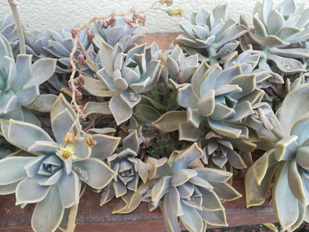 hola, el anacapseros lleva días con sus capullos pero sin abrirlos, como llevamos días sin suficiente sol todo tapado y no llueve a si que le he puesto agua en su plato pero nada, los aeonium siguen su curso aeonium percarneum tiene una hermosa floración pero ya sabeis es de las que luego tengo que decapitar, pero que no se seque toda, ya mostrare lo que resulte de momento no le veo ni un solo capullito per las ramas que florecen
