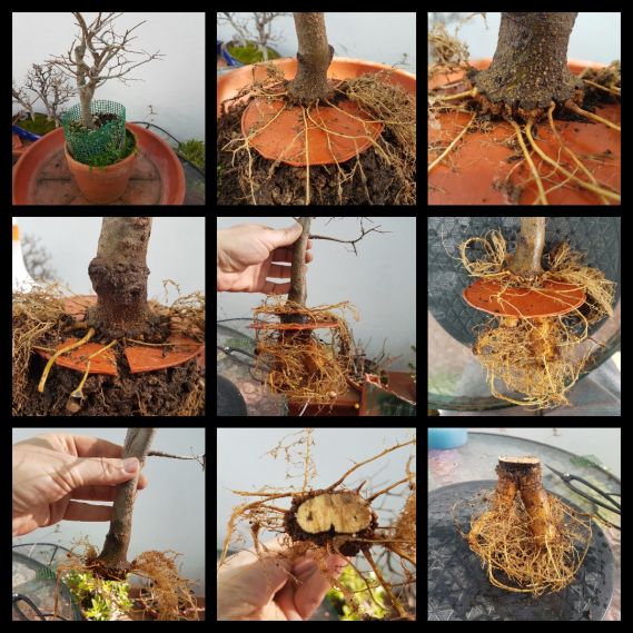 Me anoto el comentario de Shogun de acortar más las raíces... Aunque así de primeras da cosilla quitar tanta longitud de raíz no habiendo muchas....lo que me cuesta ver si con ese grosor de tronco esas raices son suficientes para que el árbol prospere.