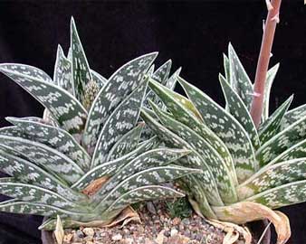 Ah leche! Aloe variegata, con "T". Aloe variegata Con el variegata se han hecho bonitos híbridos. Aloe millotii x variegata Aloe Snow Flake x variegata Gasteria glomerata x Aloe variegata