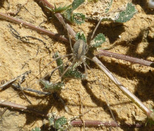 Formater, se trata de un opilion como comenta pvaldes, lo más probable (aunque la foto no lo detalla en exceso) es que sea Cosmobonus granarius, no hay nada de lo que se ve que lo contraindique, y además es muy abundante en 'nuestra' zona. Saludos