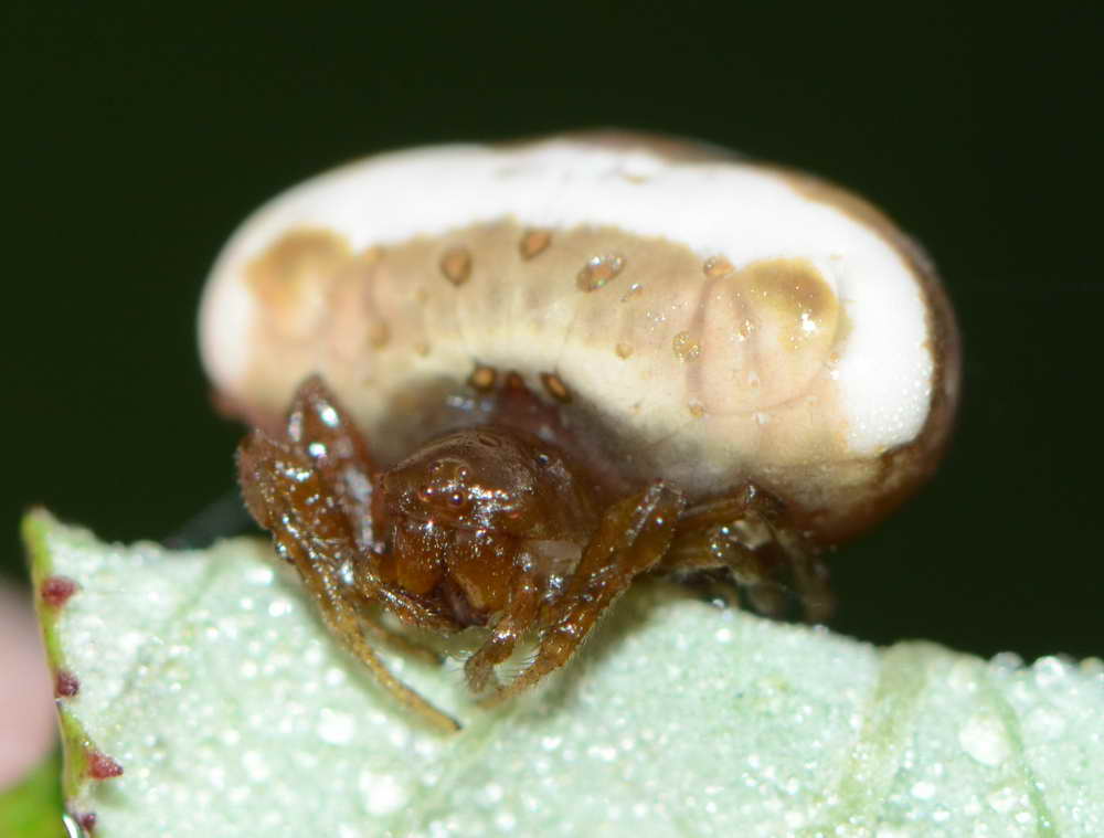 Una araña superchula . Su opistosoma me recuerda a un emoticono entre triste y contrariado . 82 Cyrtarachne ixoides id. skullvk Pego (Alicante), 18/8/14 Un saludo,