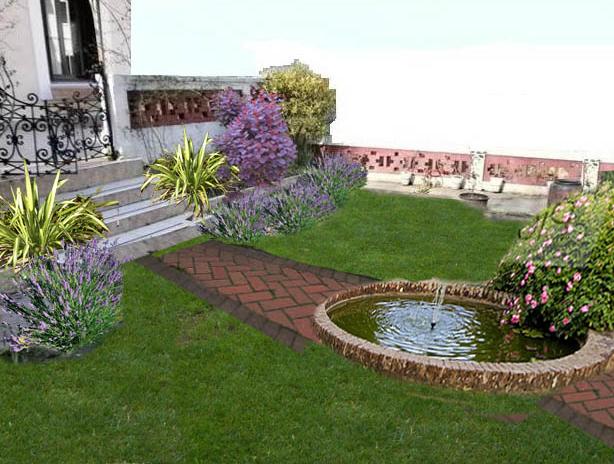 Cuidado ! estamos viendo un poquitos metros lineales, este es un dibujo que no esta acorde a la realidad.ademas depende de donde se lo mire esa perspectiva que comentas. la vista es para un palacete pero no para 31 mts de jardin !! es importante ubicarse en cuanto a las dimensiones que se esta trabajando porque puede llevar a errores grandes como seria este.No es valido un diseño que no tenga en cuenta las dimensiones reales, visto en un plano podria achicar el espacio y producir un efecto decorativo exagerado.El circulo proporcionalmente de todos modos deberia ser mas grande a mi juicio, menos longitud recta.
