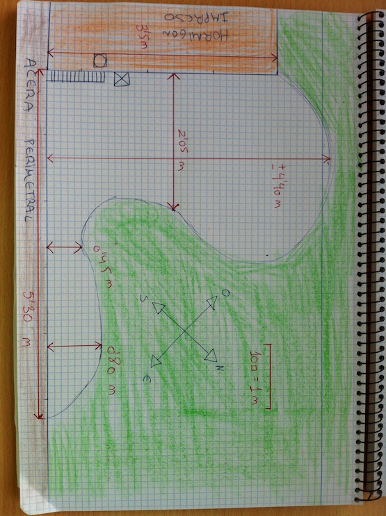Re: Necesito ayuda para dar forma a un parterre y llenarlo de plantas. Hola a tod@s y muchas gracias por intervenir !!! Os voy a dar algunos datos de la orientacion y las horas aproximadas de sol que creo que deberia haber puesto en la presentacion y no lo hice. Me he dado cuenta al preguntarlo Jara. No habia caido.... ,.lo siento. El sol se pone aproximadamente por donde he marcado en la foto. ( ahora pongo un plano con los puntos cardinales que me he currado con las pinturas de mis hijos ). Empieza a dar el sol al parterre por la zona donde ira el olivo, donde esta la sombrilla. Sobre las 12 o asi en invierno y quiza algo antes en verano. y en verano ya le esta pegando sol a toda la parcela hasta que se pone practicamente, salvo lo que le tapa mi propia valla. Y ahora os pongo un planito casero para ver bien el espacio. De plantas no opino porque hablais del tierra acida, de tamaños y cosas que no puedo comentar porque no tengo ni idea.... Solo se que me gustaria poner salvia hot lip y kiniphofia, que me encaprichado. Y creo que Mareyo tambien para ella Por cierto tambien quiero santolina en lugar de cineraria pero las cinerarias aqui aguantan. No solo lo digo porque tengo seis, es que en mi barrio habra sin exagerar mas de 100 en las medianas. ( exagerando mas de 500 ). Jara no he intentado con el tuyo poner medidas y eso y con el ordenador tardo mas. No es lo mio. Asi que lapiz y papel.....Espero que sirva. Por cierto estoy de acuerdo con Jara en que no me gustaria plantas que invadan la acera, o sean muy altas en ese lado, para que no sea efecto pasillo, pero si me gusta que monten sobre el hormigon y rompan la recta. Y tambien por todo el perimetro. Vamos que sobresalgan por donde sea menos la acera. Muchas gracias.