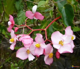 BEGONIA NATIVA (Begonia cucullata Willd.) NOMBRE CIENTIFICO: Begonia cucullata Willd. OTROS NOMBRES: Begonia virgen, Begonia alta, Begonia de cera, Semperflorens auténtica. La Begonia Virgen es una planta ornamental nativa de nuestras tierras y de las regiones limítrofes de Argentina y Brasil. Es la especie primaria virgen de donde han derivado los cultivares que hoy conocemos como Begonia semperflores o flor de azúcar. Hemos rescatado el cultivo de esta hermosa planta, ya perdida, para el disfrute en nuestros jardines, terrazas e inclusive, interiores luminosos. Tiene porte arbustivo, alcanzando alturas hasta de un metro, con grandes hojas "en copa" y floración del blanco al rosado durante casi todo el año, menos en invierno. Transcribimos de una página WEB, de las pocas que contienen algún comentario el siguiente informe: Wax Begonia ................................... .................................................. ..................... Azedinha do brejo , Azedo do brejo , Begonia do brejo , Erva de sapo - - - - FLOR DE NÁCAR ~~~~~~~~~~~~~~~~~~~~~~~~~~~~~~~~~~~~~~~~~~~ Begonia del delta , Adrial , Agrial , Agrio agrial -- Begonia cucullata Willd. var. spatulata (Lodd.) Golding -- Familia: Begoniaceae (Begoniáceas) Esta es la especie más austral del género Begonia en todo el mundo. Esta delicada variedad vegeta en las selvas marginales y pantanosas de las provincias argentinas de: Chaco, Corrientes, Entre Ríos, Jujuy, Misiones, y Buenos Aires. También la encontramos en el estado de Paraná en el sur del Brasil; en el Paraguay en los departamentos de: Caazapá y Cordillera; y también en el Uruguay. Otras dos variedades se encuentran en la región: Begonia cucullata var. cucullata en las provincias argentinas de: Corrientes, y Misiones; así como en todos los estados del sur del Brasil; en gran parte del Paraguay; y en todos los departamentos del Uruguay. La tercera variedad es: Begonia cucullata var.arenosicola (C. DC.) L.B. Sm. & B.G. Schub. Esta variedad vegeta en las provincias argentinas de: Chaco, Formosa, Jujuy, Misiones, Salta, Santa Fe, y Tucumán; así como también en el estado de Santa Catarina en el sur del Brasil; y en el Paraguay en el departamento Itapúa. El género Begonia comprende alrededor de 1.500 especies. Unas 150 de ellas, además de casi 10.000 variedades e híbridos, se comercializan para su uso en jardinería. Son oriundas de la regiones tropicales y subtropicales de América, África y Asia. Son plantas terrestres (a veces epifitas) herbáceas, con tallos acuosos, algunas de porte semiarbustivo o incluso pequeños árboles y otras trepadoras, perennes excepto en climas fríos, donde la parte aérea de la planta muere. Las flores son muy diversas tanto en forma y tamaño como en color; son unisexuales, la masculina contiene numerosos estambres, la femenina posee un ovario inferior con 2 ó 4 estigmas ramificados. El fruto es una cápsula alada que contiene gran cantidad de diminutas semillas. Las hojas son asimétricas. La mayoría requieren temperaturas cálidas, sombra ligera (pocas toleran el sol directo), suelo bien drenado que no esté constantemente húmedo, pero que tampoco se deje secar completamente. MEDICINAL Importancia económica: Begonia cucullata Willd. (flor de nácar). Especie cultivada como ornamental. Utilizada en medicina popular como diurético, purgante, antiescorbútico y antisifilítico (Martínez Crovetto, 1981). NOTA: Hay otra especie muy emparentada con esta que se diferencia en tener sus tallos de tono rojizo, su nombre: Begonia cucullata Willd. var. cucullata. Foto: gentileza Adriana. Sus hojas son de un verde más intenso, más suculentas, menos "acampanadas" y toman al atardecer un aspecto aterciopelado. Siembra: Sus semillas, insertas en pequeñas bolsitas tri-aladas (foto 3) son de pequeñísimo tamaño, casi un polvillo. Para su siembra, se mezcla perfectamente el contenido de esta cápsula en una medida equivalente a una taza de tierra finamente tamizada y se distribuye “al boleo” en la zona o contenedor asignado en forma superficial. No se cubre con nueva tierra. El porcentaje de germinación es muy elevado.