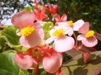 Begonia Flor de Azúcar (Begonia cucullata var. cucullata) Familia: Begoniáceas Origen: Brasil Características: Planta erguida, perenne, de tallos herbáceos y 20 a 40 cm. de altura. Hojas: Aovadas, redondeadas de 5 a 10 cm. Flores: Blancas, rosadas y rojas, simples o dobles. Época de floración: Primavera hasta otoño. Destino: Macizos o borduras en jardines, interior y balcones. Adaptación: Buena, de fácil cultivo. Suelos: Suelto y fértil con resaca de río y tierra en partes iguales. Luminosidad: Plana con luz solar directa o en ambiente luminoso. Resistencia al frío: Muy susceptible; la afectan temperaturas inferiores a 6ºC. Humedad del ambiente: Atmósfera con poca humedad. Riego: Día por medio en verano y cada semana en invierno. Abonos: 2-3 gr. de fertilizante granulado por planta en primavera. Causas parasitarias: Cultivada en lugares húmedos y con escasa aireación la ataca el oidio. Propagación: Por siembra en almácigo o esqueje en primavera. Cuidados: Cambio de maceta y poda. Las imágenes son de la red y de Terra Nostra.