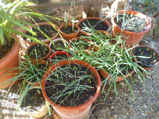 En las hondas, están los jacintos al fondo, espero que no sean tan hondas para como no salir. Ya se que acumulan el nutriente del año pasado , pero por si acaso, necesitan más, les pongo abono , se ven algunas bolitas en las fotos. Es cierto que los muscaris, son los primeros en salir, verdad, hace montón de tiempo, que ya están con las hojas, sin embargo, cuando ando por la zona , no los veo, seguro que están pero no me fijo bien. Pues si , salen sin apenas, esfuerzo, a veces veo salir, algunos en zonas, del jardín que apenas se riega, lo que tu dices, solo lo que les cae del cielo, y aún así salen, lo que me maravilla es lo grandes que se ven en las fotos, pero luego al naturalizarse, ya son más pequeños. Supongo, que el abono, es milagroso. Estos seguramente, los repartiré por el jardín, y para el año que viene pues compraré más para las macetas. En estas macetas, que están naciendo a montones, no recuerdo lo que puse, son de la primavera pasada del lidel. Hace un par de meses, la vacié y renové la tierra, y habían montones de bulbos, que supongo que son los que están naciendo ahora, además de los lilium, claro esos aún están en reposo. Hace nada que corté las parte verde. Por cierto, no se si este año volveré a comprar los del leroy, ya que desaparecieron de la maceta, estos no eran tan grandes, pero bueno por lo menos no han desaparecido. No se si os ha pasado alguna vez. Un saludo y muy buen día.