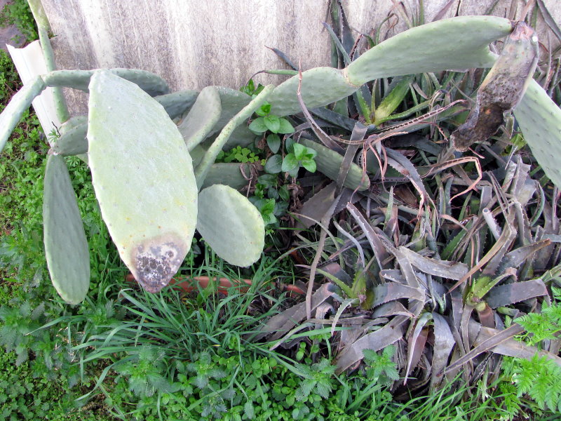 Muy buenos días Rafaela como van tus plantas qué tal usted.?¡ Enhorabuena Rafaela, este si es un lugar bueno para ella, cuando se establecerá te dara hijuelos. La mia le dio la helada este año y se quedo bien el centro pero las pencas exteriores estaban bien destrozada por la helada, tengo la suerte porque tiene muchísimos hijuelos y no es tan grandota como la tuya. Cuando tu puedas metele una carretillas de tierra o 2 alrededores y que contengan piedras de río si es posible. Hasta la aloe y la chumbera le toco sufrir este invierno: Suerte con ella y un saludo