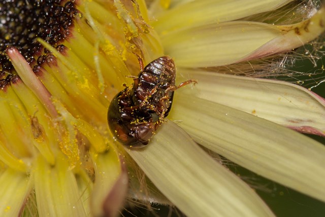 Buenas, de ayer en el limonero de casa: 1133. Scymnus sp. id. Isidro. Un escarabajo que en mi infancia veía a miles y ya hacía muchos años que no veía uno, me hizo especial ilusión encontrarme con él: 1134. Gonocephalum sp. id Isidro. 1135. Certallum ebulinum id. Isidro. Un saludo.