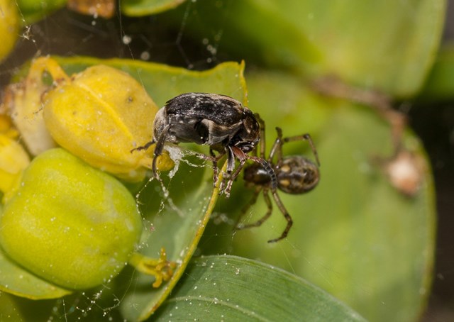 Hola, 1143. Agapanthia cardui y este coleoptero y aprobechando la araña?: 1144. Bruchidius sp. id. Isidro. 1145. Anelosimus o Kochiura id. isidro. Saludos!