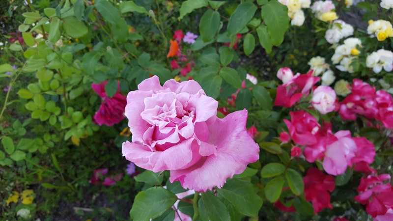 Otra rosa que huele muy bien es muy fotogénica y es muy buen rosal Millie Rose o Parfum de liberté, entre otros nombres