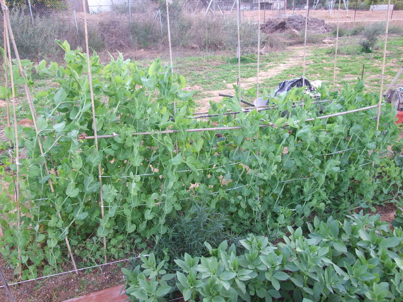 17 de diciembre Hoy palicilla, terminar de sacar piedras y tubérculos de castañuelas del bancalito donde irán los ajos de Montalbán que nos pasó Esther en la kdd de El Padul y espero que algunos más; quería acercarme al mercadillo de los domingos para traer más ajos de cola larga, pero como he dicho en el otro post, a las 9:30 dicen se van a dejar caer los del Internet Satelital a realizar la instalación (), a ver si mi cuñado se acerca, como suele hacer, y le hago el encargo. Para un bancalito de 6 x 0,6 m, parece mentira la cantidad de piedras que he podido sacar (y eso que ya habíamos sacado en marzo cuando empecé a montar las parades) y los tuberculillos de castañuelas (o juncias, Cyperus rotundus). Por la mañana hice casi solo eso entre las 10 y la 1; después de comer caí en un sueño narcolépsico de una hora , luego a las 4 de nuevo; enterrar las cintas de riego (tuve que cambiar una que tenía un apaño), poner los 30 litros de humus de lombriz, un par de litros de ceniza de la chimenea que tuve que cernir primero, y 50 litros de compost; la base del mantillo (crestall) que pensaba allanar mañana y empezar a clavar los dientes de ajo de Montalbán y replantar los ajos de cola larga del mercadillo de La Matanza; veremos cómo se da la cosa con los de la instalación aquí, ojalá y terminen pronto. La cosecha si que va avanzando bien, pongo fotitos, incluyendo las de la primera zona con abono verde que ya he cortado, pues las leguminosas empezaban a florecer. Abono verde, uno de los bancales ya cortado, el otro listo para hacerlo; una vez seca esa hierba (cortada, no arrancada) habrá que mezclarla con la tierra usando la horca y dejar pasar al menos 15 días antes de ponerse a plantar. Fijaos la cantidad de materia orgánica que ha producido con esas semillas de comida para palomos sin maíz ni piensos Acelgas de colores, aunque ayer comimos algunas, todavía hay bastantes hojas en las matas, que ahora están brillantes y bien sanas Lechugas baby, con bioprón parecen que quieren explotar Lechugas de Morella de Nic, ¡preciosas! Lechugas Oreja de Burro de Esther, ¿cómo las ves?, yo Las borrajas crecen con más y más fuerza Las coles y su familia están cuajando todas, menos aquellas que despuntaron los conejos ¿donde estáis conejitos, donde estáis? Primero las brócolis Coliflor violeta sícula Lombardas, están cerradas y densas Romanescu Espinacas matador Guisantes de vaina violeta y alderman, aún sin flores Habas decreciente conforme nos acercamos al pino carrasco, de raíces muy superficiales en estos territorios semiáridos Habas red epicure cuajando Y para la fiesta virtual, acabo de terminar de hacer un salmón marinado al eneldo que hay que tomar ya, mañana va a volar con toda la gente que viene a la segunda sesión de "tortas de recao", que también apunto para el postre, si es que nos cabe algo más. Un abrazote y ¡FELICES FIESTAS!