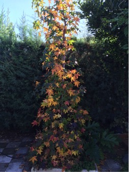 Buenas Xavier que bonito el Acer ginala, a ver si este invierno me hago con uno aunque nose donde meterle jeje y el Acer sacharinum impresionante, pero si es verdad que crecen muy rápido, será dificil controlarle... Duathor que envidia que el kaki por ahi os colorea, aquí directamente se pone negro y se cae, pero bueno bastante que me aguanta. Aquí os mando unas fotos del ginkgo y de los liquidambar, que aunque no se aprecie en las fotos por el otro lado estan más rojizos, será que les da más el sol