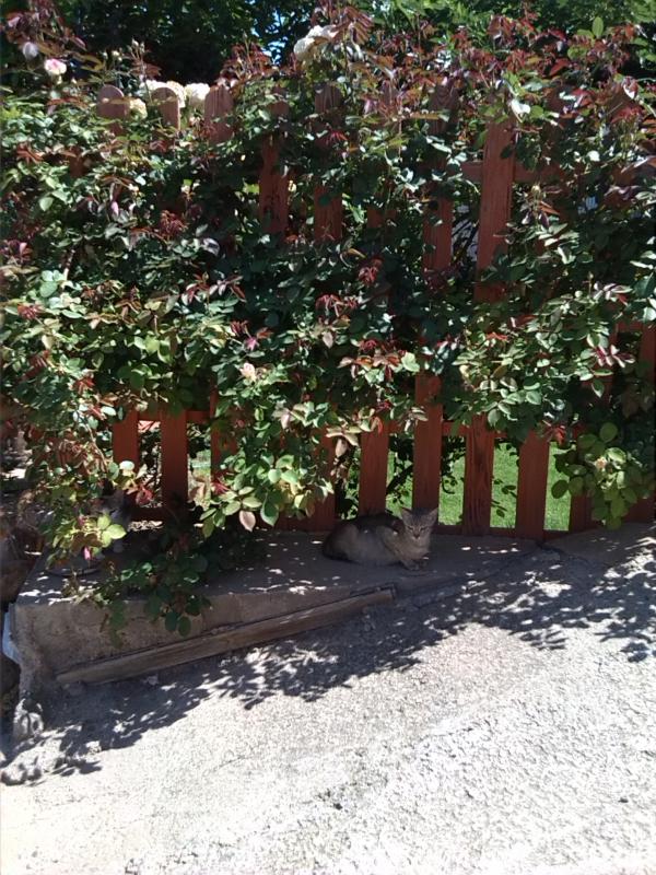 Así es. Ya ves que he hecho la foto desde la misma perspectiva para que no hubiera confusión-los gatos no son los mismos, como hay varios...- Retiré toooodas las rosas de la primera, un tratamiento de cobre y azufre, riego y un poco de abono, y ..voilà. El segundo Pierre también está rebrotando pero va un poco más retrasado porque está más expuesto a todas inclemencias. Saludos