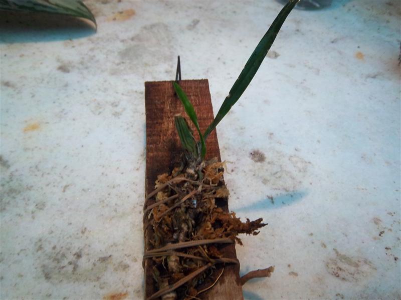Oiii creo que ya heché moco de nuevo... Vi recién en una página donde tenían la Brassavola puesta para abajo... Va así o hacia arriba... Yo la puse hacia arrbiba, aunque como la rama está medio torcida quedó algo inclinada... Qué hago?? La cambio de posición?? Tiene varios brotes, pero todavía no sé si son hojas o raíces...