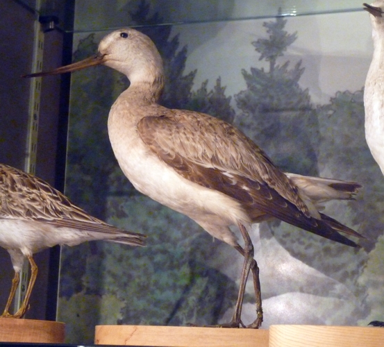 ESPECIE 177: Limosa haemastica Lugar de la toma: Museo de las Ciencias de Boston Año: 2019 Nombre común: Aguja de Hudson Familia: Escolopácidos ¿Donde vive? América Curiosidades: Su migración es casi heroica, pues sus territorios de cría se sitúan en el Ártico canadiense, desde donde migran sin detenerse hasta la Patagonia para invernar. ¡Diez mil kilómetros sin escalas!