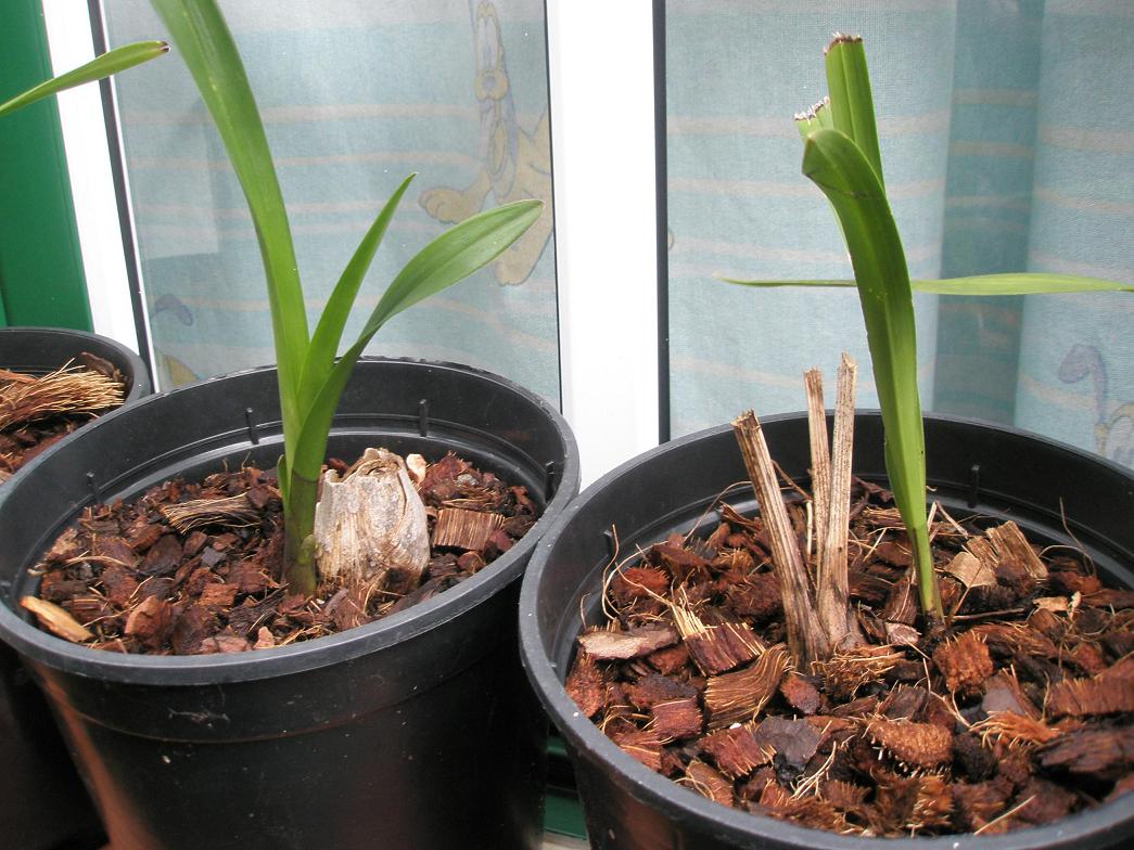 Y lo de los bulbos secos. Hay gente que los deja yo si puedo y estan facil de quitar los quito y los planto en tierra en el jardin. Y cuando veo que ya asoma las ramitas verdes lo planto con sustrato de orquidea y así tengo otra planta. Besos.