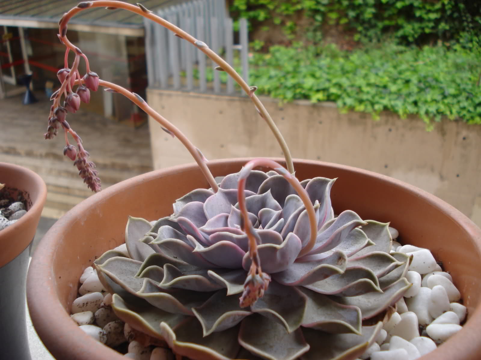 Re: Flores de echeveria para comparar.Echeveria 'Sofía' Echeveria 'Sofia' Roseta madre Del tronco le brotan nuevas rosetas Roseta joven separada de la madre hace unas semanas Otra roseta joven afectada por la cochinilla, se puede ver que la inflorescencia es distinta por su juventud, es mucho más corta Inflorescencias más largas de la planta madre