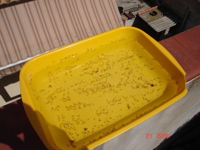 Muchas gracias por la ayuda, he subido esta tarde a mi campo y resulta que han crecido un monton, he examinado otra vez a la perfeccion los nuevos brotes y estan mas que sanos. Eso si, esos malditos BICHOS siguen hay, y ahora son el doble. De momento he puesto 7 trampas cromaticas con dos gotitas de mistol, las he dejado puestas 10 min antes de irme otra vez a la maldita ciudad y habian caido ya como mínimo 50, espero que cuando vaya otra vez mañana o pasado este lleno de esos malditos bichos. Pero si la plaga no ha disminuido, comprare mas tapper amarillos y furmigare con Confidor. Pero no se, es una cosa rara, solo estan esos bichos en las tomateras, en las sandias, melones, pimientos, berenjenas, calabazines y lechugas no estan, es mas extraño que un perro verde. De hecho hoy he estado 10 min repasando todas las hojas con los dedos para matar a esos indeseables y habre matado como mínimo unos 500, pero vamos a ojo de buen cubero y tirando por abajo. No se, los veo demasiado grandes para ser pulgones, llevan ya hay 1 semana y no han causado daños a la planta (de momento), pero no estoy dispuesto a dejarlos mas tiempo en mis tomateras ! Dios salve a las trampas cromaticas.
