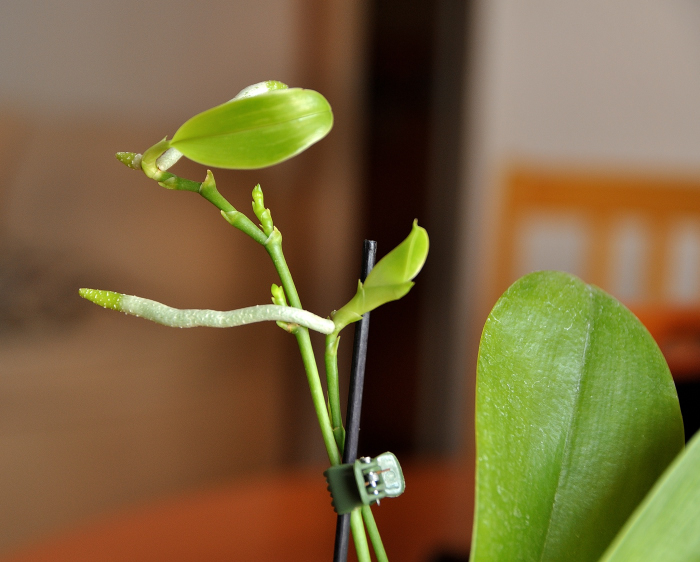 Esas raíces son las de los keikis que se buscan la vida, casi sale antes la raíz que la hoja del hijo. Si te refieres a los de la tercera foto, eso es la vara que se esta dividiendo, aún no sé lo que saldrá de ahí, pero keiki no... De momento tengo tres keikis, pero seguro que hará más