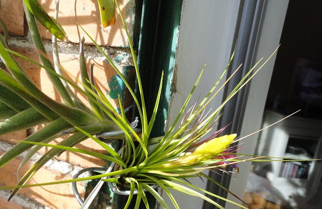 Por aquí las primeras en florecer en este mes de reflexion ha sido la T. schiedeana. Una de las más perjudicadas por el viento y la bajada de humedad del invierno. Muy oportuna ella. En estos momentos es cuando echas de menos un buen macro...:Cautious: