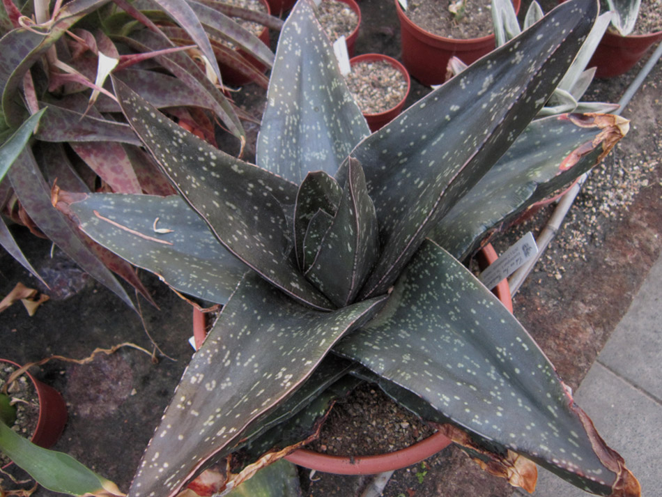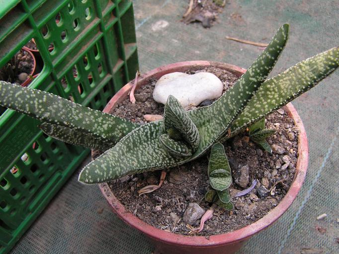 hola.pongo algunas mas. esta la tenia como gasteria excelsa,pero segun va creciendo creo que no lo es. esta planta proviene de un semillero de singularplant,de unas semillas que le traje yo de una gasteria del botanico del puerto de la cruz en Tenerife. esta era la planta en cuestion (creo) y esta la etiqueta que tenia ademas justo al lado estaba esta otra gasteria que creo si es excelsa pero mirando bien,veo que la excelsa no tenia vara floral y la otra(con la etiqueta de excelsa) si que tenia varias varas florales.por lo tanto supongo que coji de esa las semillas.pero estando mal identificada sigo sin saber cual es. esta otra tampoco se cual es,se parece a la carinata var.carinata pero tambien tiene algunas diferencias. esta debe ser algun hibrido de armstrongi o glomerata ?????? esta al igual que la 2ª se parece tambien a la carinata var.carinata una pregunta ¿? si por ejemplo tengo varias gasterias de una misma especie en tiestos diferentes,en el mismo sitio y con las mismas condiciones de cultivo,deberian florecer todas al mismo tiempo??? si no es asi deberia pensar que no son la misma especie??? gracias de antemano un saludo.