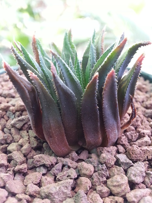 Hola Alfonso, cuanto tiempo. Yo me refería a la frma redondeada de la semiviva como la que acaba de poner Guntur. A mi megustan así. Pienso que las mías necesitan mas sol para crecermas como una bola cerrada y con las puntas secas. Pero claro, yo no me atrevo a aconsejarte que pongas las tuyas mas al sol. El sol de Malaga no es como el que yo tengo aquí. Guntur muy bonitas todas, me gustan mucho esos híbridos de hojas duras, colores oscuros y rugosos. Yo he tenido una poelnitziana que era muy pequeña y que perdí el año pasado. Me ha dado envidia la tuya. Así que este año espero conseguir otra. Pongo foto de una minima que me gusta mucho. Haworthia minima, JME18-89, Stillbay