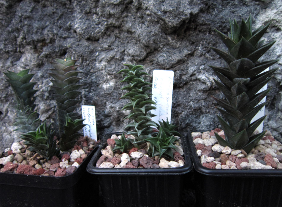 Haworthia arachnoidea v. nigricans ( apta ), DMC04039, 5 km of Lategansvlei road Haworthia emelyae v. comptoniana, TL, Georgida. Esta planta es de una amiga. La tiene en sustrato universal y arena, me la mostró para que viera su magnífico aspecto. Haworthia angustifolia v. baylissii ( viridula ), JIL325, Aalwynspoort, W of Riebeek Haworthia tessellata ( coriacea ), Scimmelberg, W. Steinkop