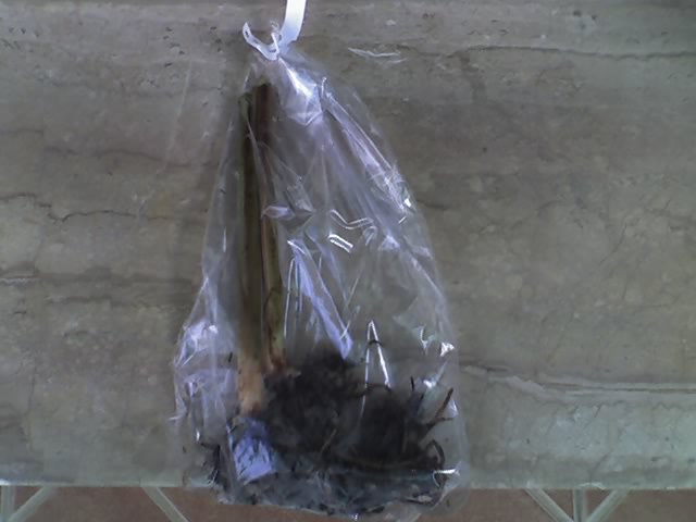 el jamaiquino rojo es una Musa (no Ensete spp.) y llega a crecer varios metros de altura (más grande que los "usuales" comestibles, crece como árbol "pequeño", los he visto de 5-7m de tronco libre) pero parece que los plátanos que da no son comestibles (o al menos no muy degustables) sino que se aprecia más por el valor ornamental de su tronco (que no llega a ser tan grueso como los de los distintos plátanos/banano pero) que es es de un color rojo/tinto intenso muy contrastante y decorativo con el usual verde de las plantas. este es el tronco del plátano jamaiquino rojo de 9 meses de edad (muy delgado aún). Ya no necesita esos amarres pero se me ha olvidado quitárselos. 101479 el follaje nada fuera de lo común. 101480 Zutano.