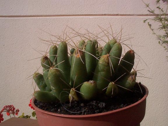 050 cleistocactus winteri paises de origen Argentina, Chile y Bolivia. Son cactus de porte rastrero o colgante de largos tallos serpenteantes cubiertos de pequeñas espinas doradas y pueden medir hasta 1 metro de longitud. Las vistosas flores son tubulares y de color rosa. Suelen florecer a finales del verano. es un ejemplar pequeño de reciente adquisicion, la vendedora me dijo que tambien llega a tener el cactus cola de mono de color blanco , estaba escondido entre plantas mayores fue una suerte el que me haya puesto a curiosear actualizado el 10 febrero 2019 actualizado 16 septiembre 2020 regresar al indice mas informacion http://www.llifle.com/Encyclopedia/CACTI/Family/Cactaceae/3784/Cleistocactus_winteri https://www.cactus-art.biz/schede/C...eistocactus_winteri/Cleistocactus_winteri.htm