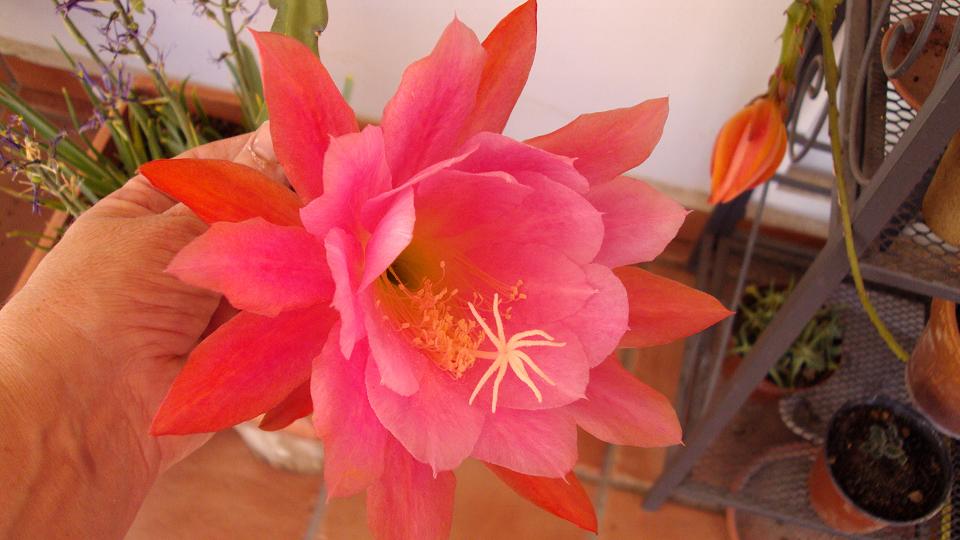 hola!!!!!! ,Pithagore dice un refran que mas vale tarde que nunca ,lo siento pero no he podido antes la planta entera unas palas viejas unas palas nuevas y un fruto del epi desconocido y el ackermanii ,espero que me de muchas semillas para compartir Pit ,las últimas flores que me dió ya no tenían tonos anaranjados ,solo rosáceos ,me supongo que debió ser por el aumento de temperatura gracias de nuevo a todos por vuestros comentarios saludos