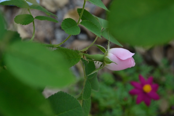 Alex pues a mi me pasó lo mismo, pero lo mismito (con la diferencia que yo pegué un grito que mi marido se asustó pensando que me había pasado algo, intenté hacer esquejes pero no era buen momento y no me prendieron) en una excursión por El Courel, la montaña del interior de Galicia en el atrio de una Iglesia de un pueblo abandonado. y era esa. La recordaba de pequeña en la Iglesia de la aldea de mis abuelos, aquí le llamaban la rosa persa. Se ve que la introdujeron los curas o frailes, en Bulgaria se cultiva para hacer esencia de rosa. Mira las fotos de esta página web a ver si se te parece, puedes ponerlas más grandes. http://aromasquecuran.es/grupoIrosaotto.html