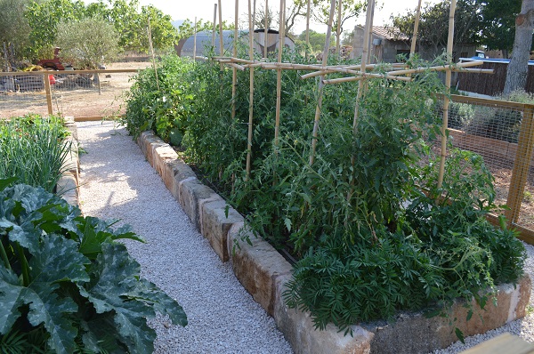 Bueno, he intentado hacer mejor algunas fotos de la zona donde irá el seto, desde el almendro que se ve a la izquierda hasta el grifo de la derecha que tiene la manguera conectada: Y unas fotos del huerto que me ha pedido Rebeca. Está acabado de terminar, se ve muy nuevo y perfecto para mi gusto, he pensado en poner plantas aromáticas bordeándolo, ya he plantado algunas a los lados de la puerta del huerto. Por ahora el cultivo es un éxito y el mantenimiento mucho más fácil. Si se os ocurre cualquier idea bienvenida será.