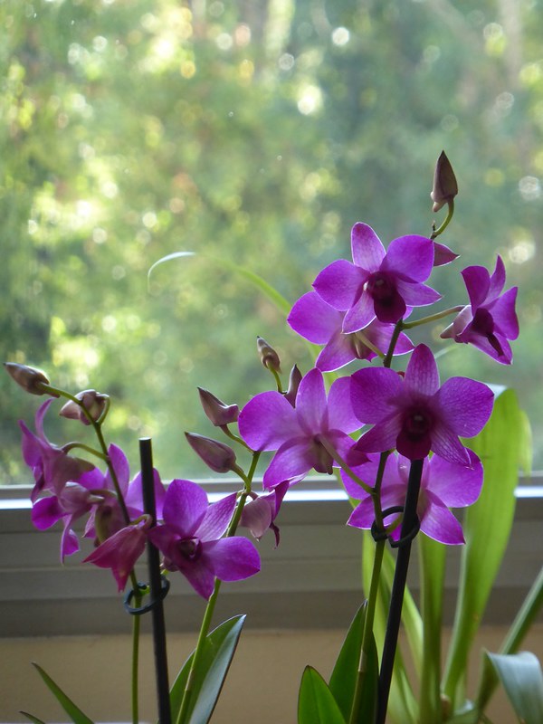 No soy muy aficionado a las orquídeas pero el otro día mi madre y yo nos encaprichamos de este Dendrobium. Espero que le guste su nuevo hogar. El color varia segun le de la luz, y según como la mires parece morado o fucsia.