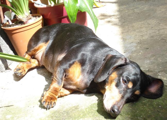 Esa perrita ha dado de mama mas de una vez, ¿ no ? ¡ Valla berillo que tienen en el pelo ! Y las macetas que estand etras de ellas ¡ me encantan ! Besos guapa