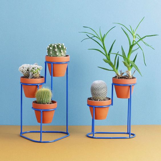 Opción similar en ¿madera? :Notworthy: Lo bonito de este ejemplo, ademas de la variedad de maceteros y recipientes, es que los elementos de soporte de las macetas ....son casi invisibles