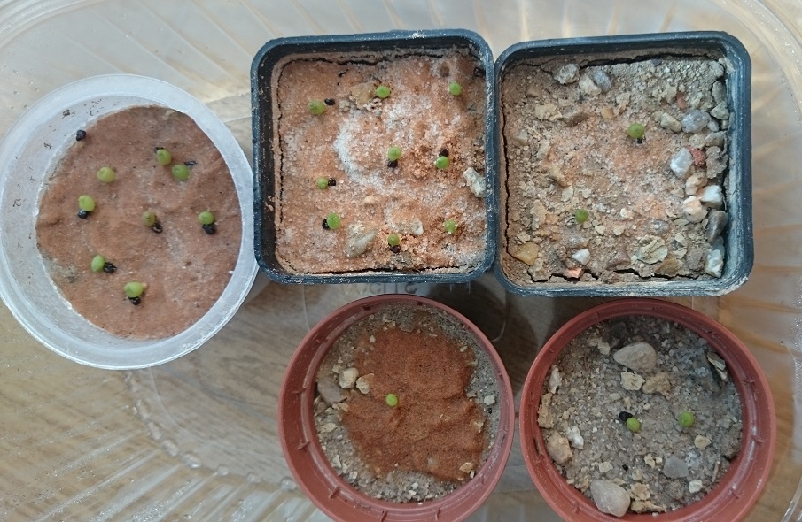 Aquí dejo unas fotos de los semilleros de Astrophytum de este año, una vez germinan los paso a sustrato definitivo en macetitas, ya que el lecho de germinación es arena. Un fuerte saludo.