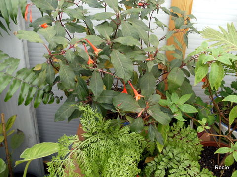 Pero como es eso posible... si tenemos todos a las fuchsias de "reposo invernal", estancadillas... y mira a ver tú! que flores más bonitas! parece mentira que estés dónde vives y con los fríos que están haciendo... Por eso tu patio es especial... Me encanta que pongas fotos Rocio, incluso aunque las plantas no tuviesen flores, me ecanta ver como las agrupas y las distribuyes, consigues que se vean hermosas sólo con el entorno, algún tiesto bonito, un macetero chulo, alguna planta que destaque a su lado, o simplemente el mobiliario de tu terraza, que está muy bien seleccionado... Pues eso Roci, que auqnue no grabes, sigue foteándonos!! Eso sí, bien abrigadita...