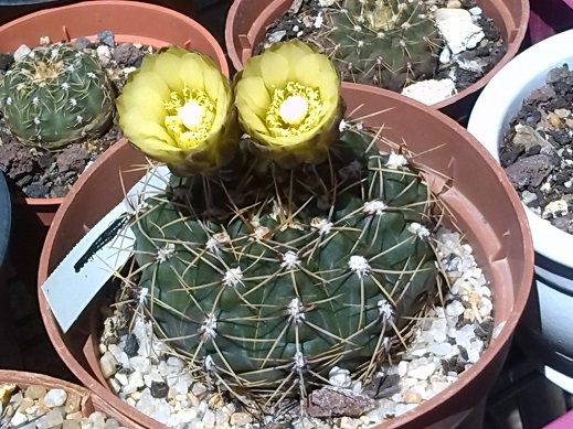 Otra vez con dos flores que "quieres y no pueden" .. Gymnocalycium Stelleanum Gymnocalycium Bruchii Esperando el sol, pero anuncian tormentas