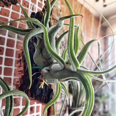 Y mi primera tillandsia puesta en corcho. Andaba la pobre de un sitio a otro sin colocación definitiva, y con las varitas a punto de abrir.