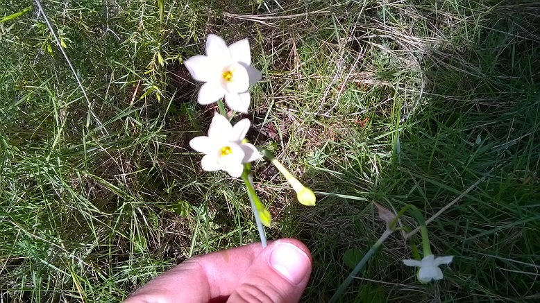 Hoy me he pasado un rato por un lastonar donde tengo localizados narcissus dubius desde hace años, y estaban así: He puesto una moneda de un euro para que os hagais una idea de su tamaño (entre 10 y 15 cms de alto). Encontrarlos es difícil si no se conocen, cuando no están en flor pasan bastante desapercibidos porque las hojas se confunden con la hierba. La corona tiene forma de cuenco. No huelen. Un saludo.