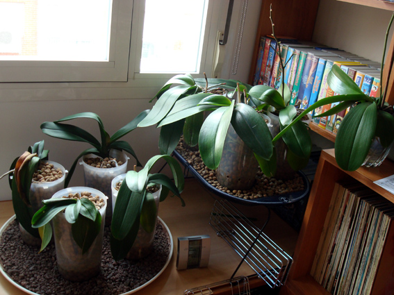 Por las fotos ya se ve lo bien que lo pasásteis en la excursión de Toledo recogiendo corcho y además leo que ha sido fructífera. Dentro de poco espero ver fotos de los montajes con explicaciones del proceso para que se vaya animando el personal, yo la primera. Esta tarde puse una barra de madera delante del ventanal de cristal de pavés de la cocina y colgué la Vanda, ha quedado muy bien y allí tendrá buena luz, humedad y no estorbará cuando pasemos, como la barra es larga podré colgar otras orquis, me lo tengo que pensar. Menudo chaparrón ha caido esta tarde. Esto hará que las temperaturas no bajen tanto. MIGUEL ¿ Para cuando las fotos de la Phal manii black ? EMILIO mis Cattleyas florecen cuando y como quieren, hay cuatro que son fieles a la cita, otras solo he visto sus flores cuando las compramos y otras son la incognita. Por ahora las dejo a su aire, mi problema es la falta de humedad.