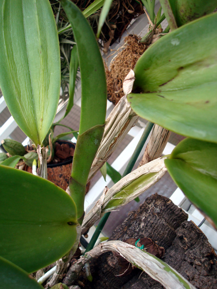 Hola a tod@s: Felicitaciones Maritza muy bonitas tus phal. Bueno ya no sé que hacer ¿meto o saco? jajajaja ayer estuve revisando un poco a las niñas y he encontrado algunas sorpresas: 1ª cym con brote o vara que pensáis?: en su nuevo sitio: se ve la arundina bambusifolia y dos vandas: Phal con vara, la terapia de frio empieza a surtir efecto: y todas echando raices: Estas las puse en Hidrop. este verano algunas estaban muyyy mal por la mudanza pero ya se están recuperando y largando muchas raices nuevas La catt se está animando y dos de las espatas están asomando botones: esta a trasluz y aunque esta parezca medio pochita le tengo fe porque el año pasado salieron botones de una completamente marrón seco. Esta es la de Costa Rica que me trajeron este verano sin id. y otras catt tambien llenándose de raices nuevas y brotes: otra con brotes nuevos: esta para Nati la cristata con los bulbos más de cerca los paphium: bueno ya pondré algunas más. Saludos