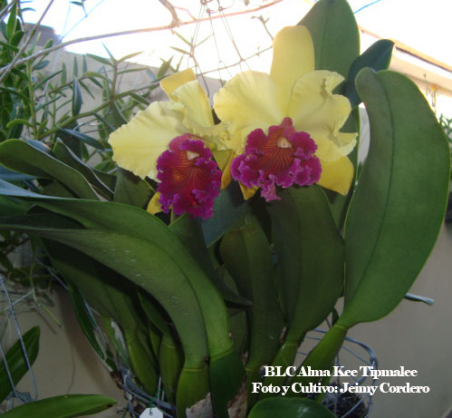 Jeymi: Si esta es tu planta y las flores son como de 2 1/2 pulgadas es una Ascocenda Queen Florist. Esta la tengo florecida en el orquidiario, esta planta cuando es totalmente adulta tiene una espiga larga con muchas flores, la que tengo florecida està en su primera floración, como la tuya, solo tiene unas cuantas flores. Anota el nombre para que se lo pongas. Las vandas de semisol o de canasta (strap leave) tienen flores mucho más grandes, hasta de 4 1/2 pulgadas, pero las ascocendas florecen hasta 5 veces al año, o sea, muchísimo más que las de canasta. Como decimos aquí "chiquita pero tupia". Besos