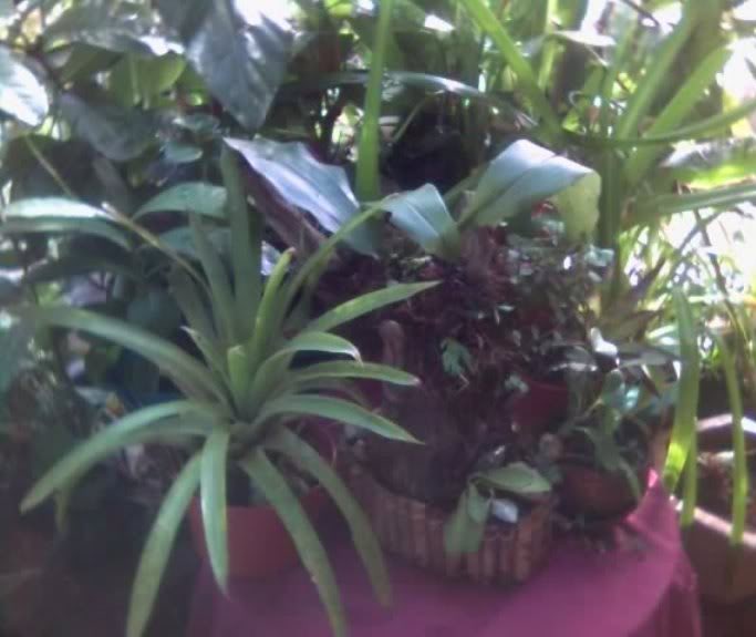 Re: Orquídeas en Centroamerica Mira éstas en donde las tengo..ellas proporcionan bastante humedad en el patio Guzmanias Vrisea en piedras..también se puede atar en una piedra tipo roca. En un nido vacio que cayó del árbol..me lo regalaron los pajarillos Cyptanthus junto a las Heliconias Tillandsia lúcida