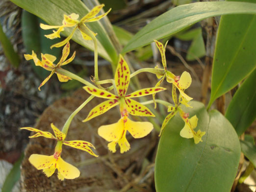 hola a tod@s!!!! waooo me lei todos los post de corrido y pense que no tenia fin esto ufff jeje, muy buenos los animos con el post!!!! felicidades a todos por tan magnificas floraciones!! mas de una me dio envidia!!!! (de la buena ) bueno yo les quiero compartir algunas de mi coleccion floracion de este año de Rhyncholaelia digbyana y una fotito de otra plantita cultivada en dos formas, epifita y terrestre y anque les va super a las dos, creo que le gusta mas estar de manera epifita (en tronco) riegos cada 2 o 3 dias dependiendo el clima y calor, esta como todas mis orquis esta en media sombra producida por algunos arboles y enredaderas una de mis favoritas Myrmecophila tibicinis esta en sombra producida por el arbol y unas palmeras, le llega el agua de algunos regadores (aspersion) casi diario, esta sobre el tronco de un arbol (no recuerdo especie) y tiene actualmente las varas florales todavia en crecimiento, (juro que tiene ya casi el metro y aun no se desarollan los botones ) apenas floresca subo fotos!! Epidendrum stamfordianum cultivada en tronco y en tierra y ha desarrollado mejor en tierra, riegos cada 2 o 3 dias, esta en media sombra (no sol directo) encyclia alata, cultivada de manera epifita, media sombra, riego cada 2 o 3 dias y esta que creo que es una eclyclia papillosa, notese la diferencia de color, las flores son un poco mas grandes al igual que los pseudobulbos y tienen un aroma mas perseptible qe la alata (como a vainilla muy rico!!!) Cyrtopodium macrobulbon cultivada sobre tronco y en tierra con mejores resultados en tierra, esta a pleno sol esta es su floracion del año pasado, la que esta en tierra este año la cambie de lugar y quedo en media sombra, y pude notar que las varas florales tienden a inclinarse en direccion del sol, luego subo las fotos de esta floracion (esta en flor) esta desarollo 8 varas y perdio 4 por accidente (lo admito fue mi culpa ) riego cada 2 o 3 dias, y crece muy muy bien, rapida y facilmente!!! despues les subo fotitos de las que faltaron!!! buenas noches!!
