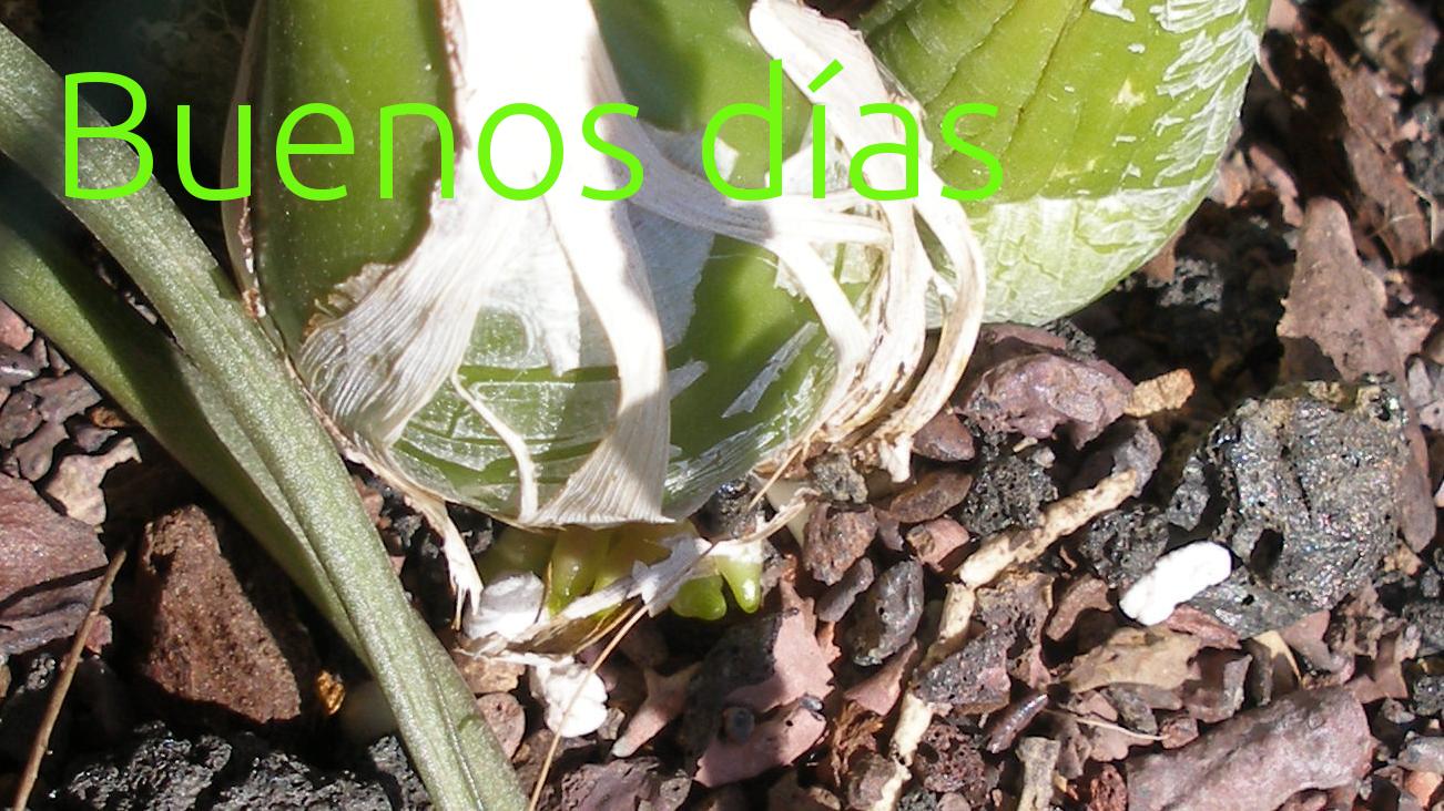 Grata sorpresa esta mañana al revisar las cestas que aun están sin crecimiento nuevo; esta Encyclia adenocaula, que lleva menos de medio año conmigo y que acabo de trasplantar hace pocas semanas tiene todo un grupo de raíces brotando de la base del bulbo actual. Aun está seca, aunque recibe pulverizaciones casi diarias evitando que los bulbos se arruguen demasiado. Siempre es apasionante el primer año, cuando aun no conoces el ritmo de una especie nueva. Hay un inicio de vara, si hay suerte este verano/otoño veré la primera flor de esta hermosa especie. Saludos Arturo